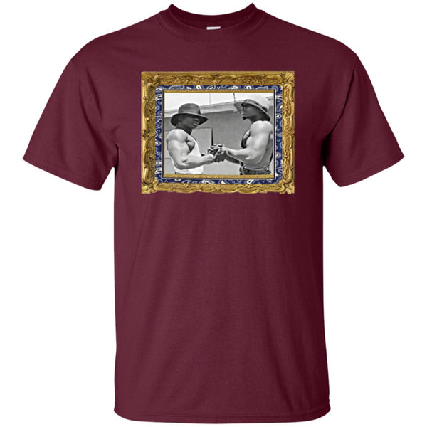 6.1-ounce, 100% cotton; Sport Grey is 90% cotton, 10% poly