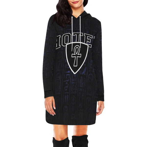 Featuring a soft fabric and an oversized fit, this hoodie dress can match with thigh boots for a modern look that is perfect for many occasions. • 195g/㎡. Made from 100% polyester. • Oversized silhouette with a hood, deep pockets and long sleeves. • Double-needle hemmed sleeves and bottom. • Machine wash cold. The print on garment body is unable to fade.