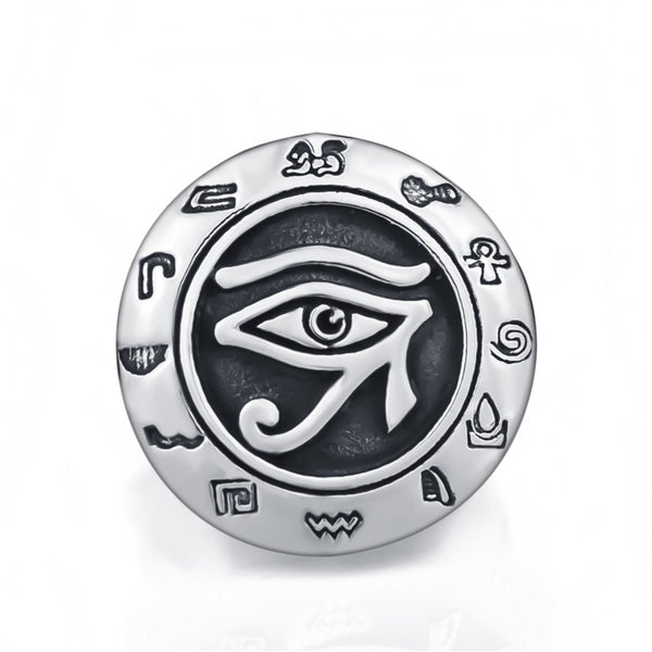 Stainless steel ring Egyptian Eye of Horus Ra Udjat Ancient Egyptian text Jewelry Size 8-13