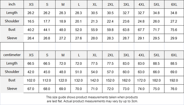 Centimeter XS S M L XL 2XL 3XL 4XL 5XL 6XL