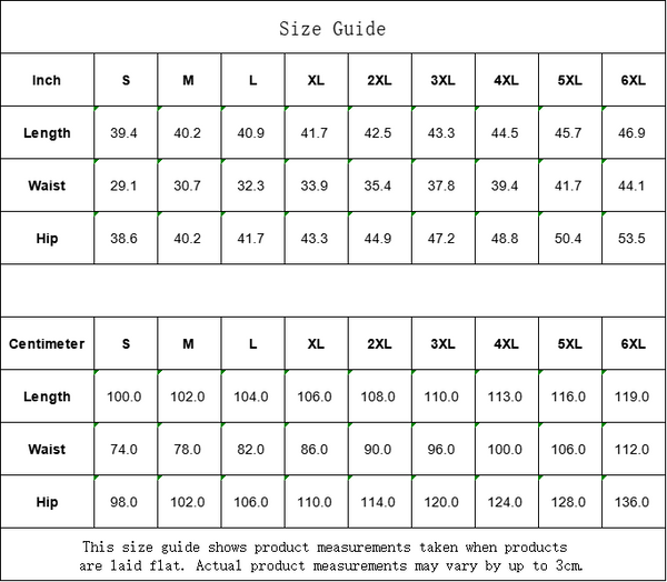 Centimeter S M L XL 2XL 3XL 4XL 5XL 6XL
