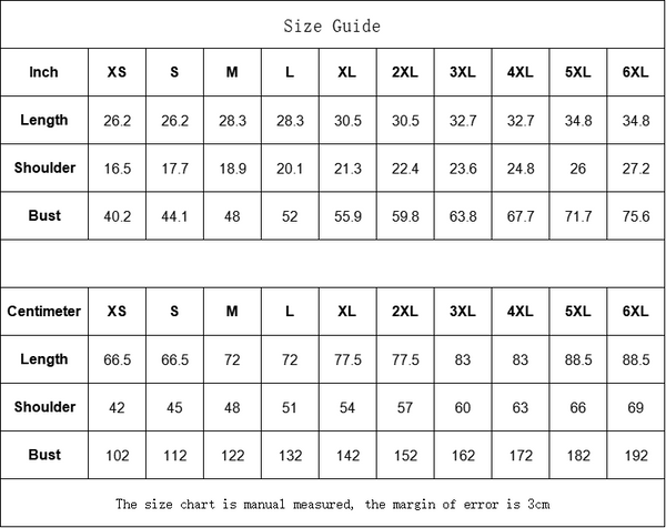 Inch XS S M L XL 2XL 3XL 4XL 5XL 6XL