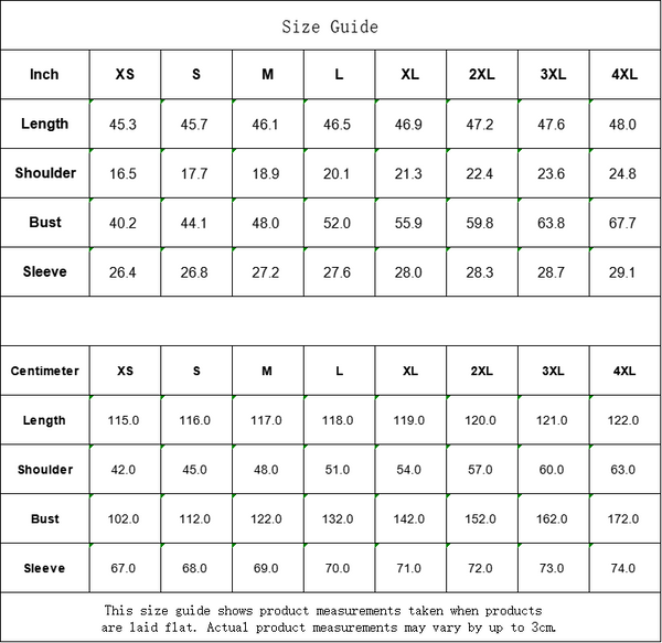 Centimeter XS S M L XL 2XL 3XL 4XL
