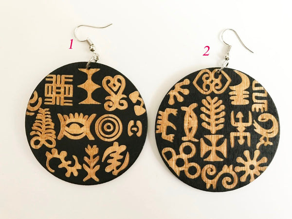 2 style Adinkra pattern fashion wood earring can mix