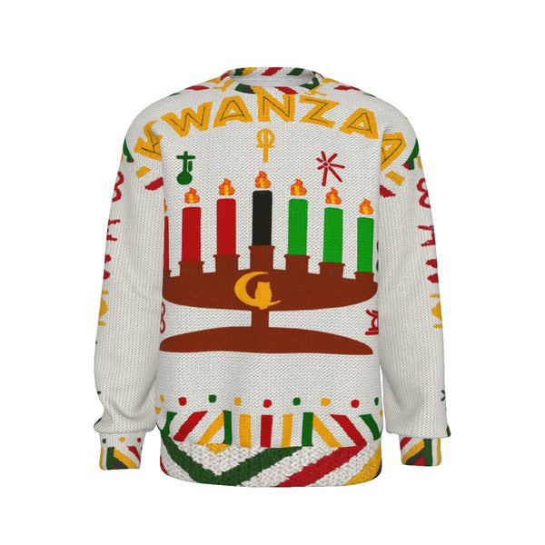 HAPPY KWANZAA WHT Unisex Drop-shoulder Knitted Fleece Sweater