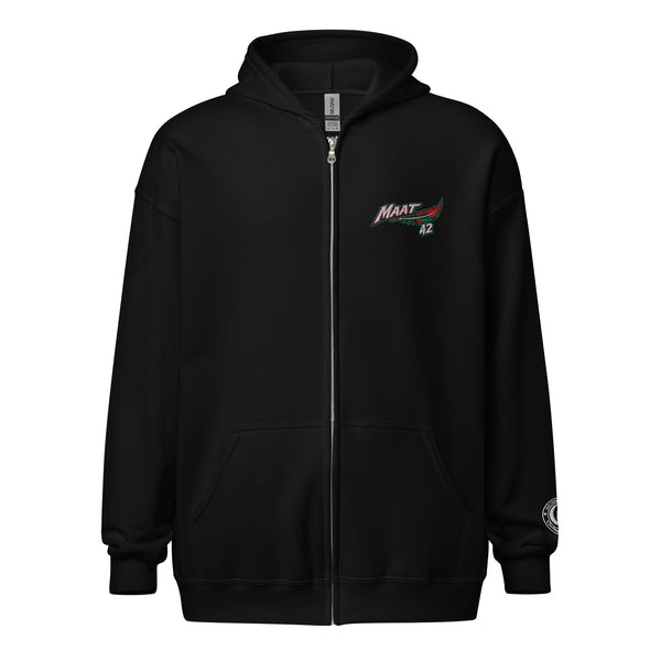 Designed with style and comfort in mind, this hoodie will quickly become your new favorite. It’s made from soft fleece inside and outside, with a sturdy metal zipper, convenient front pockets, and a hood with color-matched drawstrings.