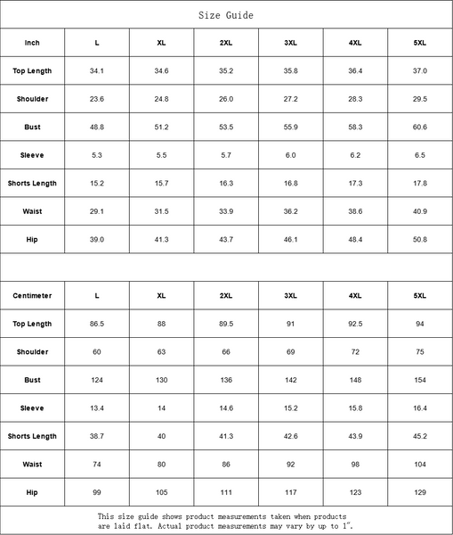 Inch L XL 2XL 3XL 4XL 5XL