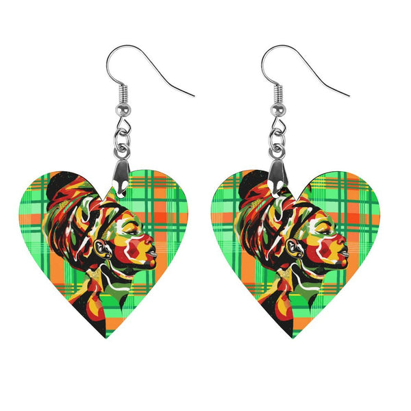 MADRAS GREEN Wooden Earrings Pendant (Love Shape)