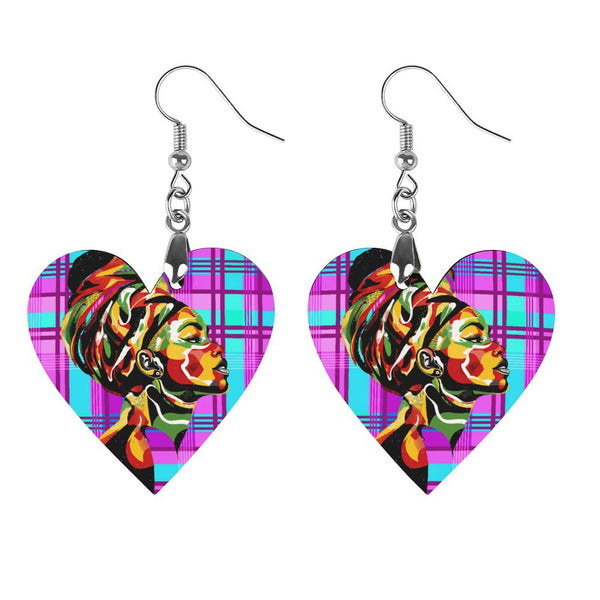 MADRAS VIOLET Wooden Earrings Pendant (Love Shape)