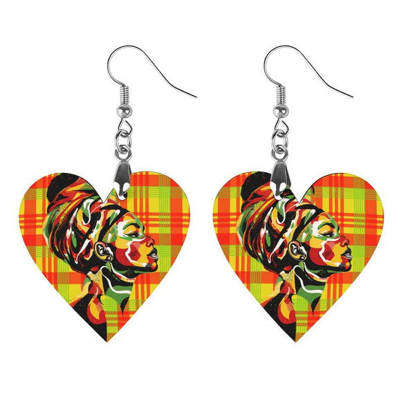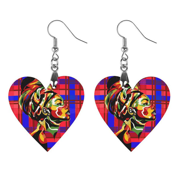 MADRAS RED Wooden Earrings Pendant (Love Shape)