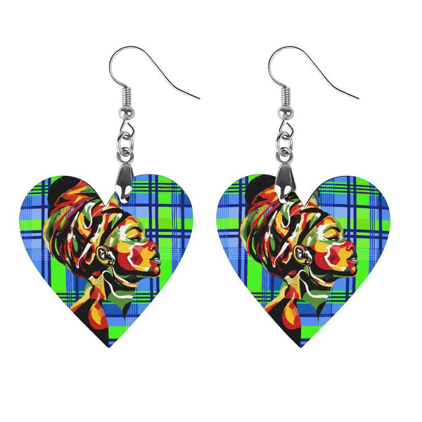 MADRAS Wooden Earrings Pendant (Love Shape)