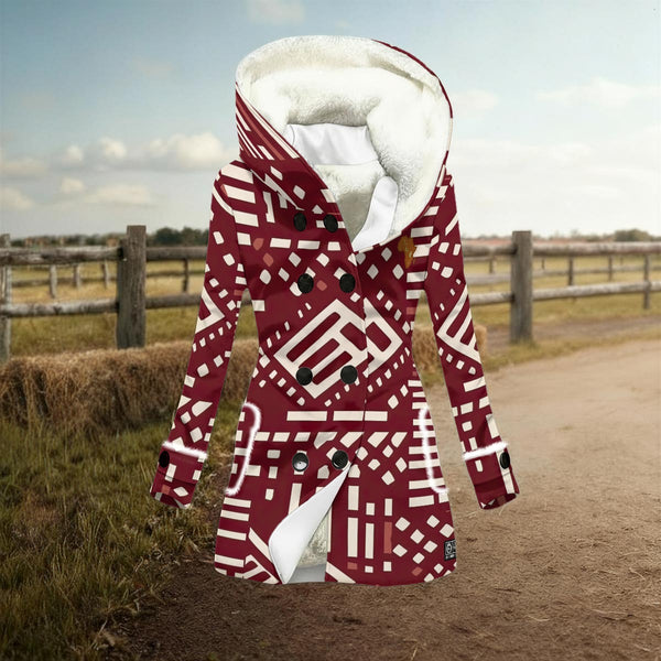 This stylish hooded jacket is the perfect way to stay warm and stylish. It features a classic double-breasted design with contrasting black buttons for a timeless and elegant look. Lined with soft, cozy fleece, it provides exceptional warmth and comfort, even in cold weather. It also features a cozy fleece-lined hood for added warmth and protection from the elements. This versatile piece is perfect for everything from daily commutes to casual outings. Its mid-length cut flatters all body types.