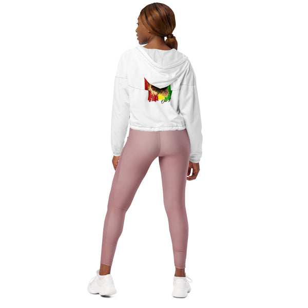 Hike in style without the rain getting in the way—this cropped windbreaker is lightweight, waterproof, and suitable for every kind of adventure. Features include side-slit pockets, breathable mesh lining, and adjustable drawcords on the hood and waist to support all your stylish outdoor looks.