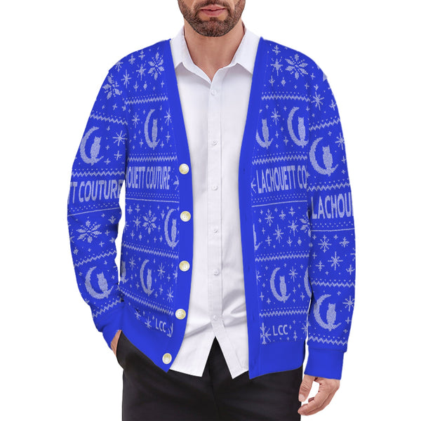 L / UGLY XMAS BLUE Men's Ribbed Cardigan (Model H73) - €31,74 EUR